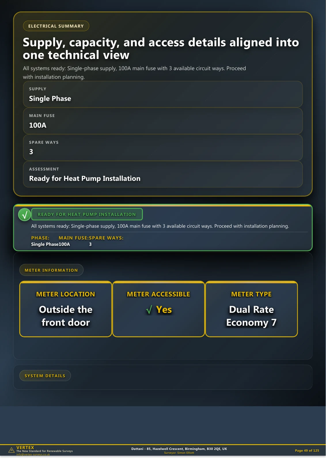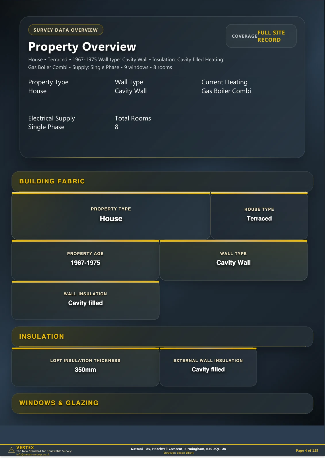 An anonymised B30 record: 1967-1975 terraced house, cavity wall construction, gas combi baseline, and single-phase electrics in the kind of stock installers regularly see across Birmingham.