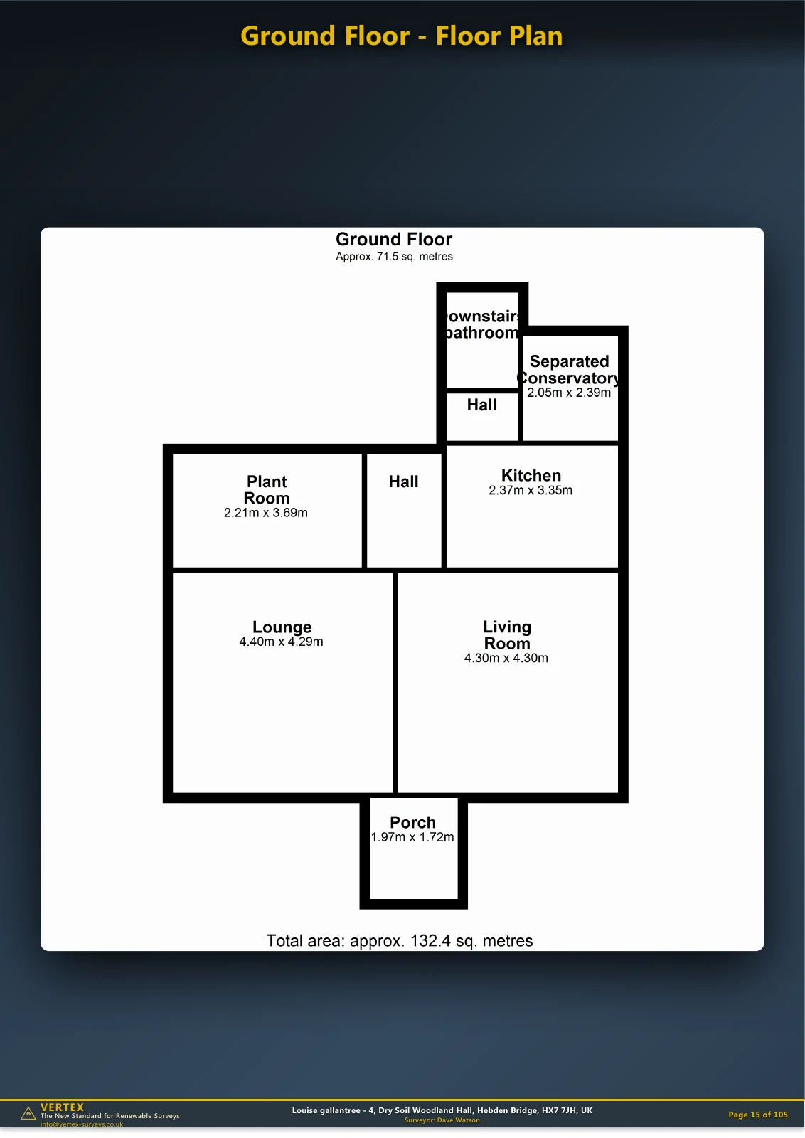These are real pages from the generated survey pack for this HX7 record. They make the stone-terrace fabric, floor-plan structure, and electrical constraints visible in the way Pennine jobs actually need.